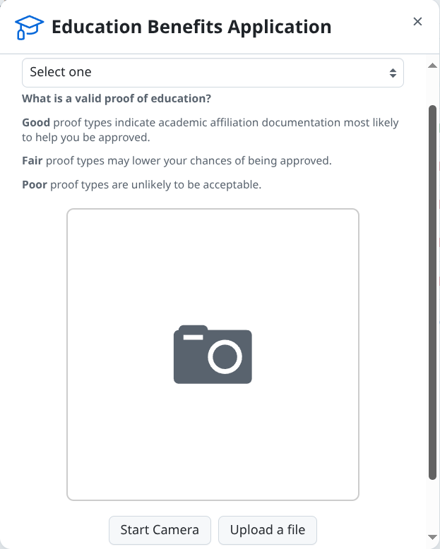 如果你找到的证明文件包括学号,请选择第一个 Dated scholl ID - Good, 否则如实选择