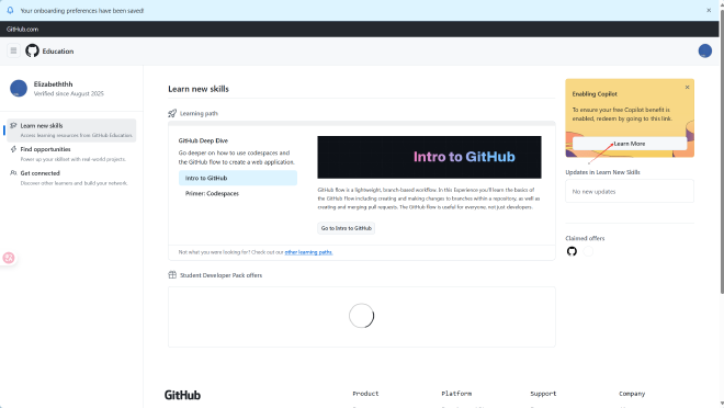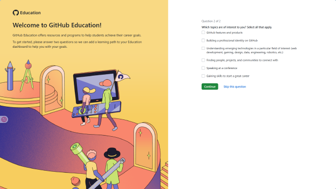 回答完问题之后,GitHub会推荐一个合适的学习路径,不重要,直接点击 Continue to Dashboard 即可