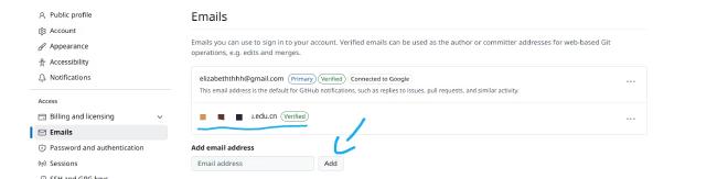 edu.cn后缀)如果你已经有了 GitHub 账号,请确保你添加了并验证了教育邮箱 GitHub邮箱设置