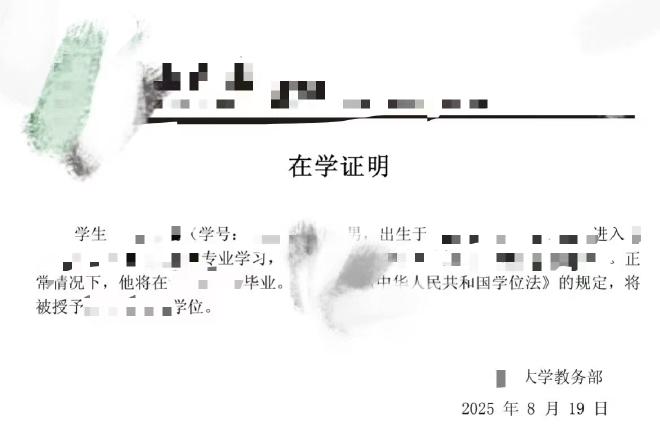 笔者能找到的最符合上面条件的证明文件是学校开出的在学证明